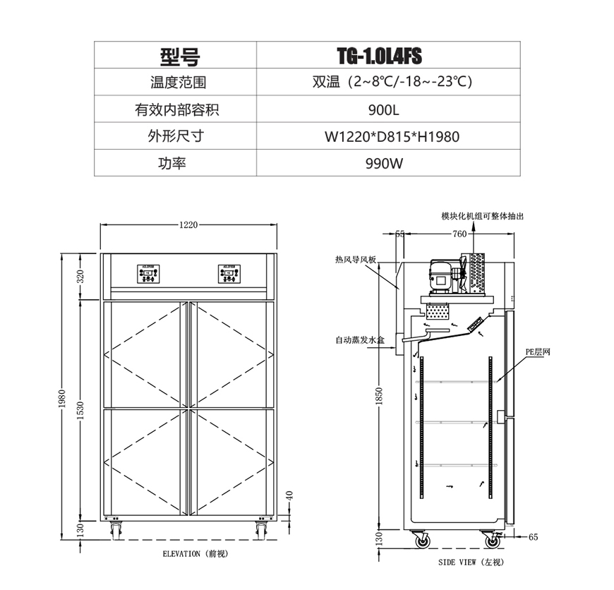 1、规格:1220*(760+55)*1980(mm)(±5%)