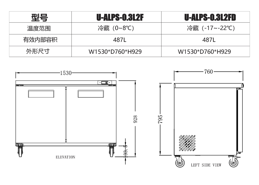2、门体及功能配置:单门发泡门冷藏柜/单门发泡门冷冻柜