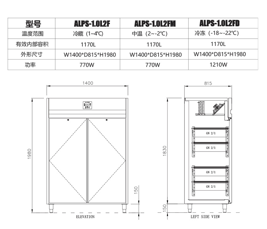 4、配8块654*530mm浸塑层网,适放2/1GN容器;间距可调;